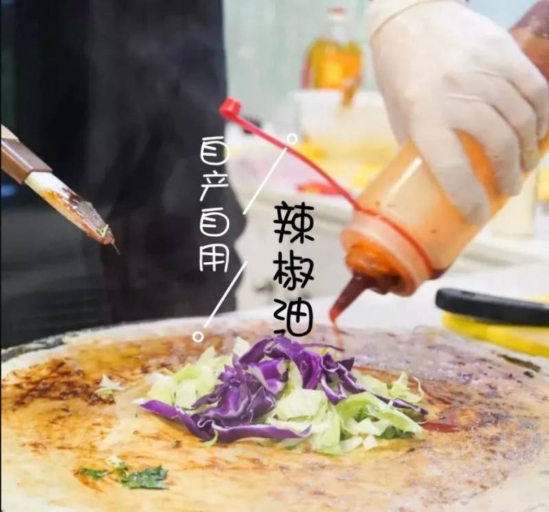 K妹必须表扬一下胖胖煎饼果子的秘制酱料和自家独特的辣椒油。这加了香叶、小茴香等炒制的酱料果然不同凡响,咸鲜的滋味配合这煎饼的蛋香,加上辣椒油辣簌簌的味道,美味Double~