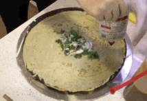 煎饼果子,是在天津有着100多年历史的美食,由山东卷著油条大葱的的煎饼演变而来,绿豆薄面做底,摊上鸡蛋,卷入馃子(油条)和馃篦儿(薄脆),再刷上面酱辣椒酱,撒上葱花香菜,煎饼果子即成