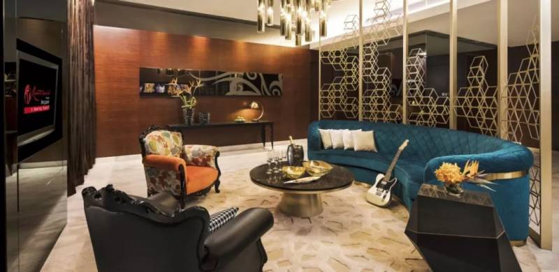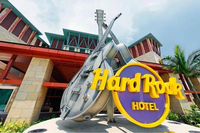 同样位于圣淘沙的Hard Rock酒店是全球著名的摇滚主题五星酒店连锁品牌,酒店里充斥着摇滚元素,不论是酒店门口的巨大标志,还是酒店房间的设计布置,都非常适合年轻人。