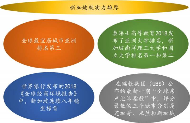 如新加坡是亚洲主要城市中最宜居的城市之一,拥有高质量的教育体系,泰晤士高等教育2018发布了亚洲大学排名,新加坡南洋理工大学和国立大学排名第一和第二。