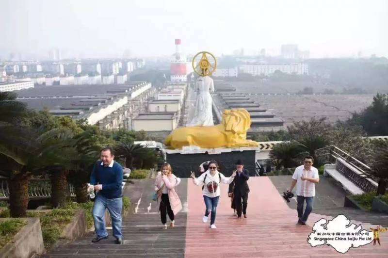 接下来,新加坡白酒粉丝们来到五粮液酒厂的酒圣山。它是十里酒城制高点,海拔320米,花大约十来分钟的时间便可径直登上山顶,将全厂风景尽收眼底。