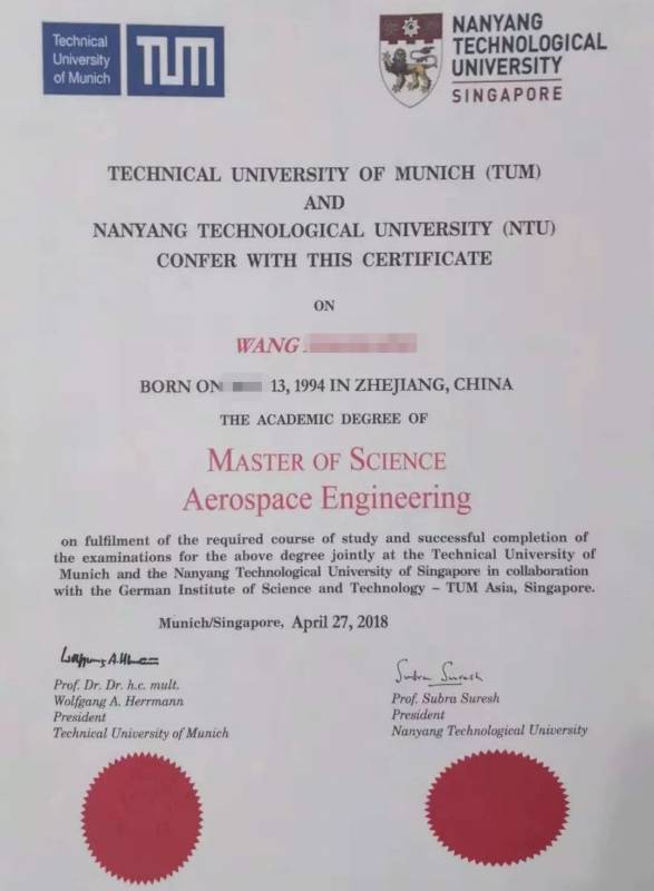M.Sc.(Aerospace Engineering) with TUM (Technische Universität München, Germany)