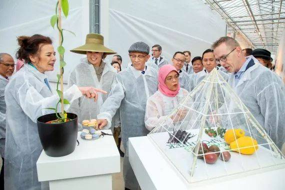 从左至右:南大副校长(研究) 蓝钦扬 (Lam Khin Yong) 教授,新加坡总统哈莉玛·雅各布 (Halimah Yacob),瓦赫宁根大学校长 Louise O. Fresco 教授和荷兰女王Maxima。