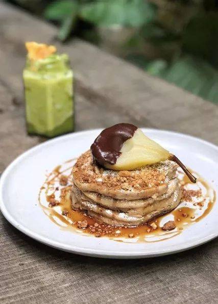 店里有很多用心布置过的小细节,都是拍照的好素材。招牌Earl Grey Pancakes茶味淡淡的,搭配梨子、巧克力和坚果碎,既不会过分甜腻,又有丰富的口感。