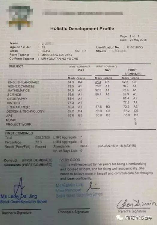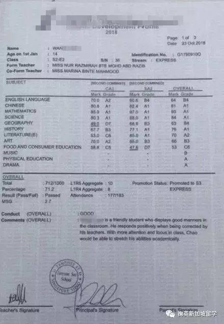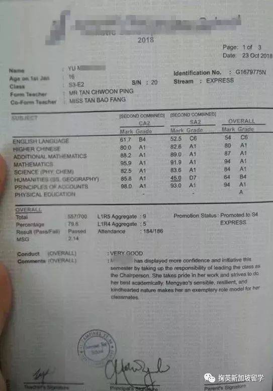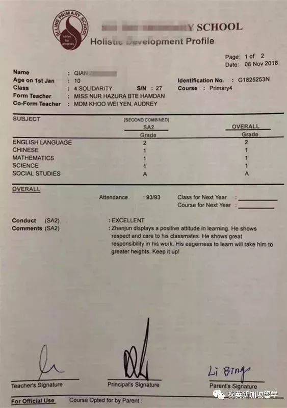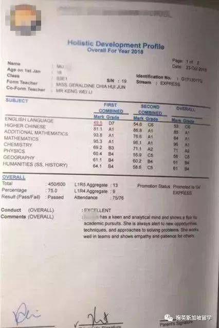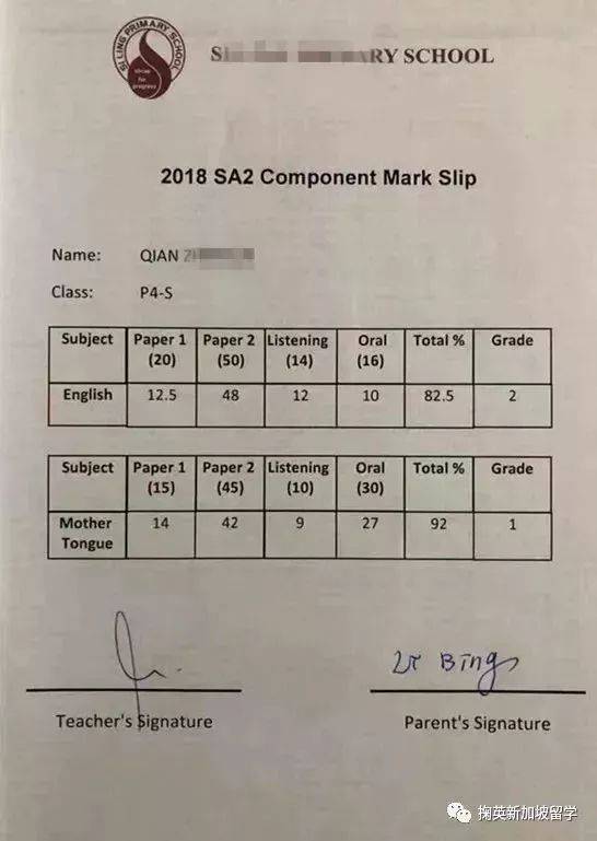 Q:英语全班第一!总分全班第一!这是刚考入新加坡的孩子的成绩吗?