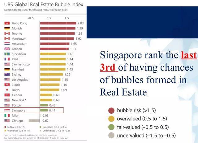 新加坡得益于政府调控措施,在各大城市房地产的价位指数上,新加坡房产泡沫风险系数倒数第三。