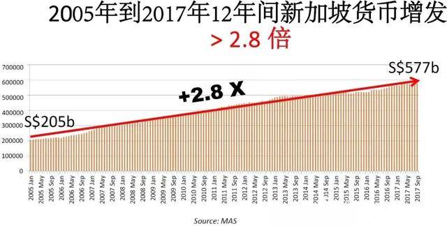 不单单是货币,土地、房屋供应量和人口流向也能显著影响房价。新加坡房价稳步向上的主要原因还是货币超发,2005年的$2050亿新币增发到2017年的$5770亿新币的货币量,超过2.8倍的货币增发。照理说房价应该也增长2.8倍才对,可事实上房价在这12年间和货币增发的2.8倍相比只上涨了1.65倍。从而也可以看出新加坡的房价很保守,非常有上升的潜力!所以说中国广义货币只要增幅依旧12年后的2030年房价上涨一倍是非常有可能的~
