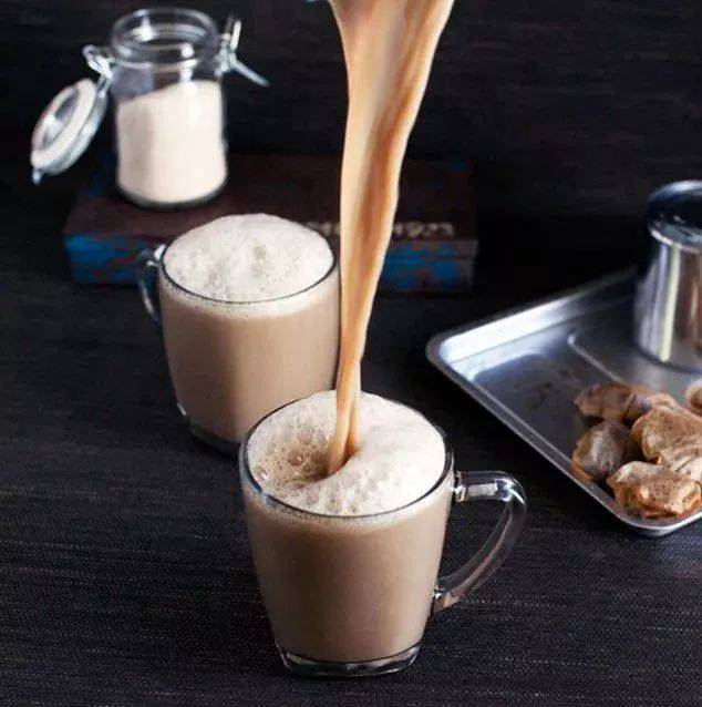 拉茶其实就是奶茶,是在两个杯子之间来回倒,拉得越长、起泡越多,茶的味道就越好。