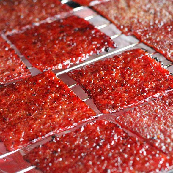 肉干油而不腻、咸甜适中,是本地春节时的必备食品之一。除了猪肉还有牛肉、鱼肉、鸡肉和肉干、肉丝、肉松等选择。
