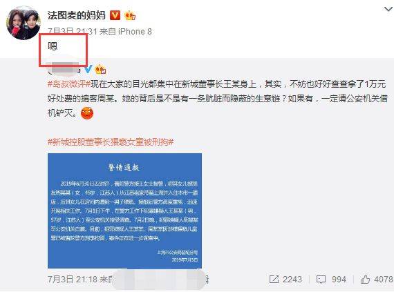 李咏遗孀、知名电视人哈文更是一直关注,连续转发4次博文,强烈谴责凶手以及删帖者的丑恶。