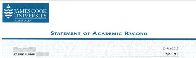 ID of student:这个是8位JCU ID,在大家的毕业成绩单上面都会有;
