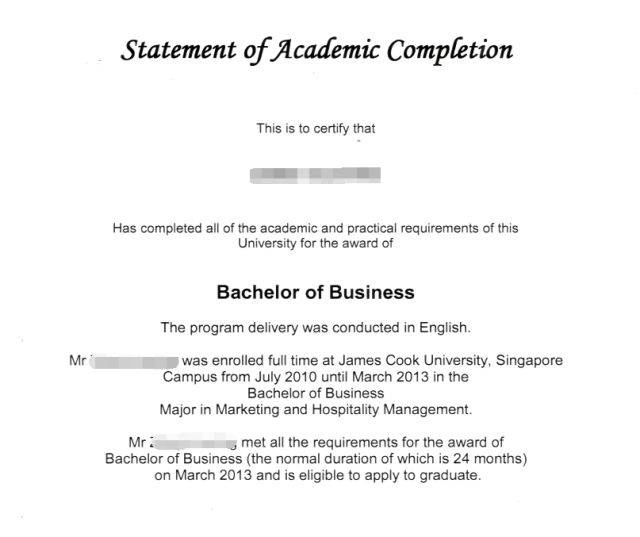 2.需认证的JCU学位证书;注:已毕业但尚未取得学位证书者,请提供JCU学生服务中心出具的已获学位的证明信。