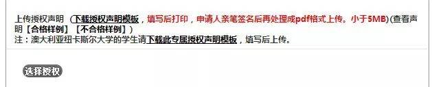 4.申请者亲笔填写的授权声明。授权声明可以在网站上下载,填写完整后打印出来亲笔签名。扫描成PDF格式,小于5M上传。