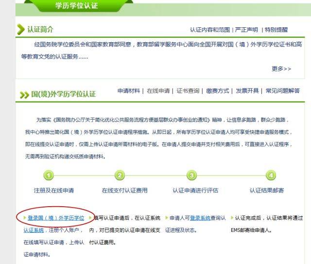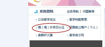 在左侧系统登陆处选择“国(境)外学历认证”,如下图: