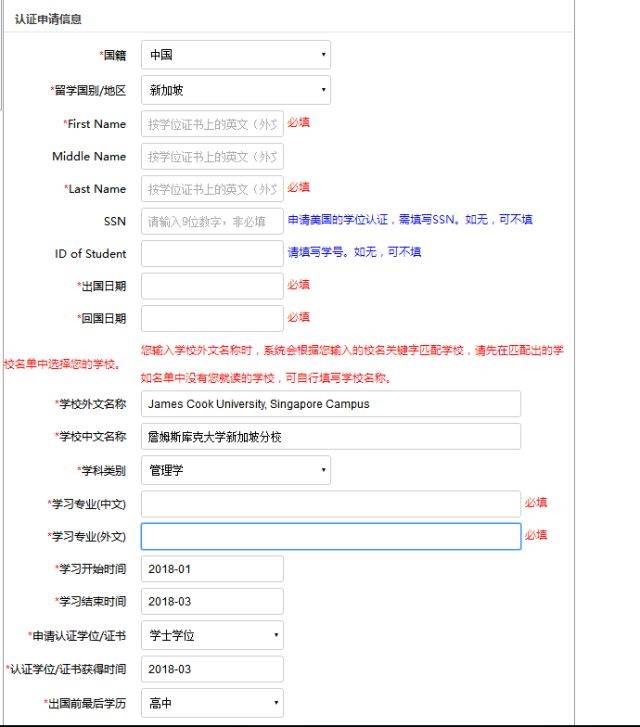 学习开始时间和结束的时间,切记,一定要写专业课(即你要认证的学位)开始的时间和结束的时间,请参考成绩单上的时间;