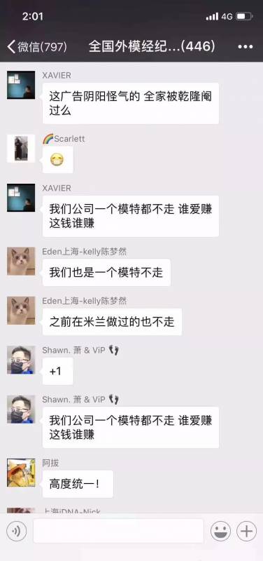 不止国模罢工,上海几乎所有的外模公司也都直接召回所有参加这场秀的外模。而东方宾利、星力、Real、Monster等中国模特经纪公司也宣布集体退出。