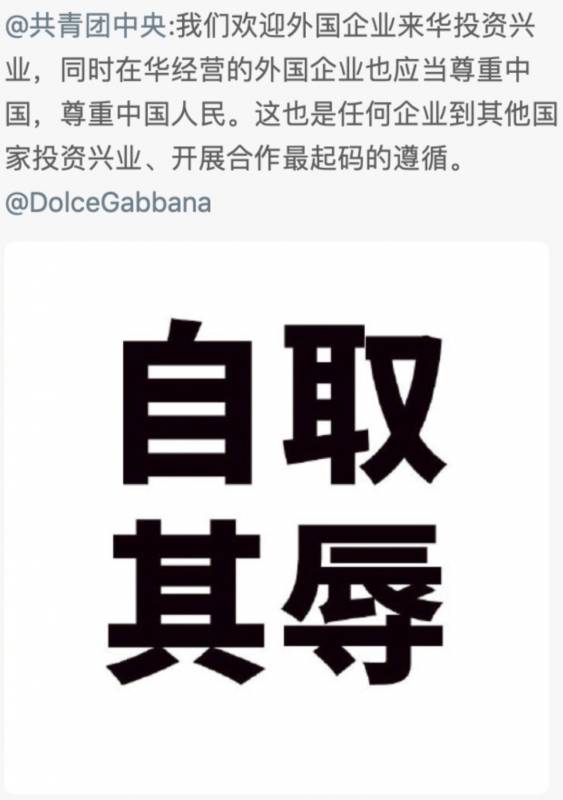 中国共青团的官博也是“语重心长”的对D&G进行了一番“教导”。