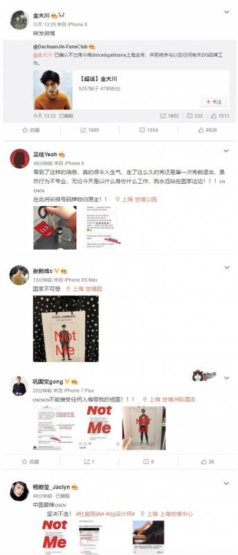 除此以外,中国被邀请走秀的中国模特已经纷纷自行退出了D&G上海大秀,并且在微博上发起了“NOT ME”行动。
