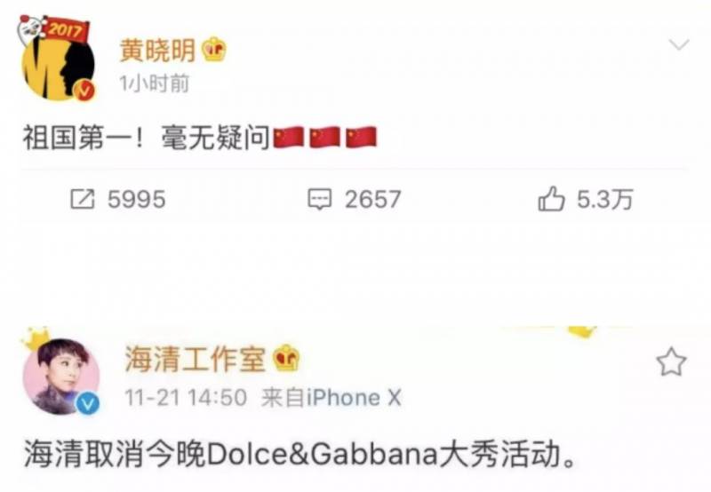 说来真有意思,D&G今年在上海的大秀还没有开始,他们的设计师却因“语出惊人”提前登上了微博的热搜榜。