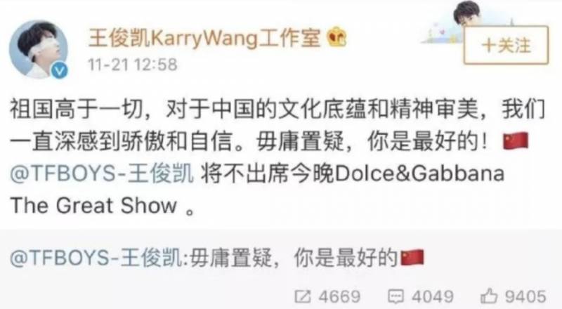 这次涉及辱华的设计师也不仅仅是一位设计师,同时也是D&G品牌的创始人之一。D&G在开拓中国市场的过程中离不开一众中国明星,合作单位的帮助,这不光是一个品牌创始人的成功,还是跨国合作的胜利
