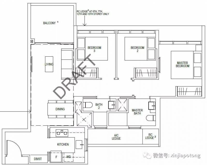 3房豪华型,106平方米/1109平方英尺,配大阳台享受漂亮河景或者小区泳池景,每个房间都够大可以放双人床,主人房就更不用说了