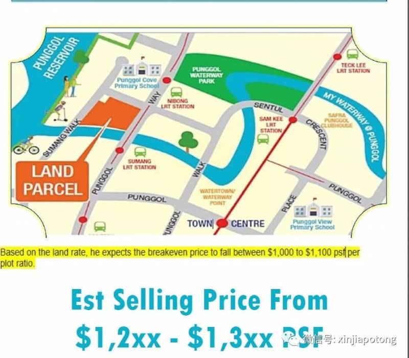 参考下面图片,今年有块执行共管公寓的地已经被开发商标出,在靠近新加坡最北端的榜鹅,需坐几站轻轨才可以到地铁站,预计开盘价格是12xx~13xx/平方英尺,注意是执行共管公寓哦,限制条件多,要新加坡人才可以买,收入不可以超过14000/月,购买者名下不可以有私人住宅等等。现在Riverfront价格12xx/英尺,大户型的价格甚至只需11xx/英尺,这样价格哪里找。没有什么限制,地点还更好些哦,贷款这块相比执行共管公寓更容易。