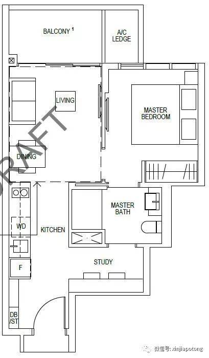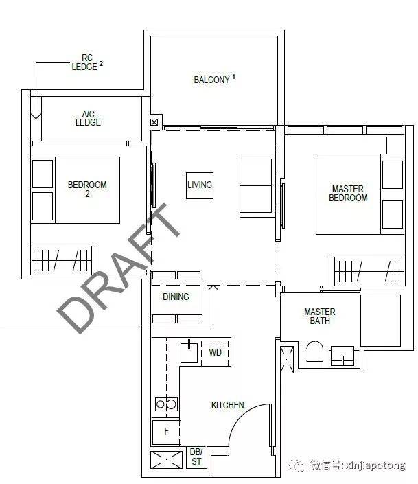3房普通型,85平方米/ 915平方英尺,还有一种81平方米的户型,适合小家庭,还有一种81平方米/872平方英尺户型