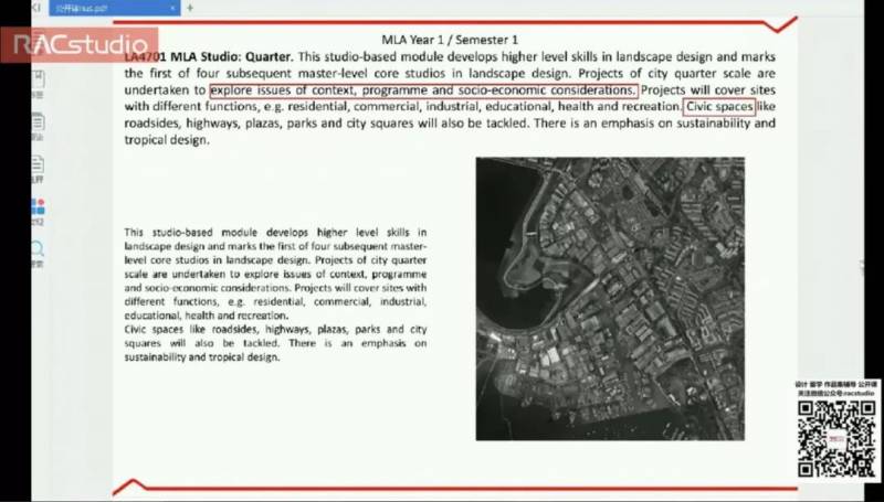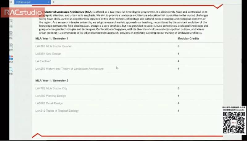 NUS的MLA有四个Studio,不同尺度,每个学期有studio。