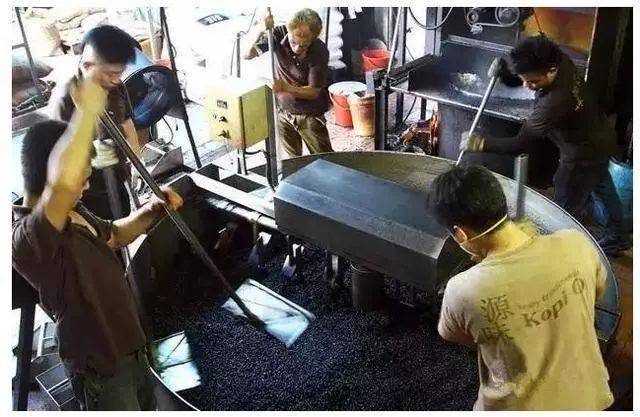 接着把咖啡豆倒入一个大锅中