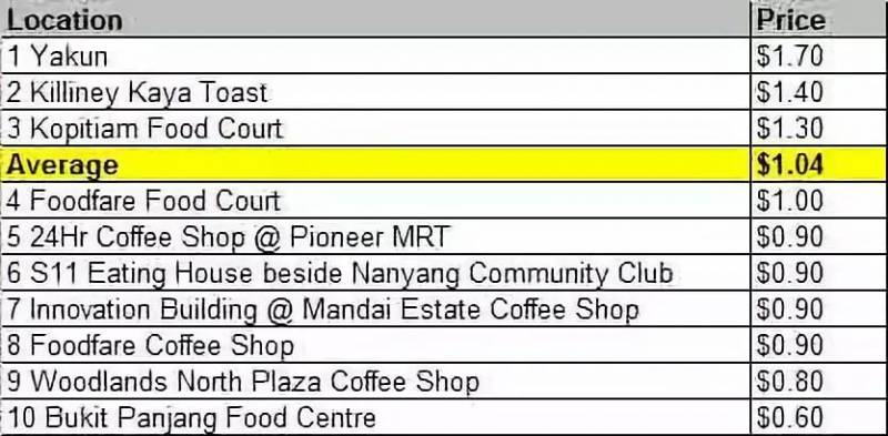 (一杯KOPI-O在不同地方的价格)