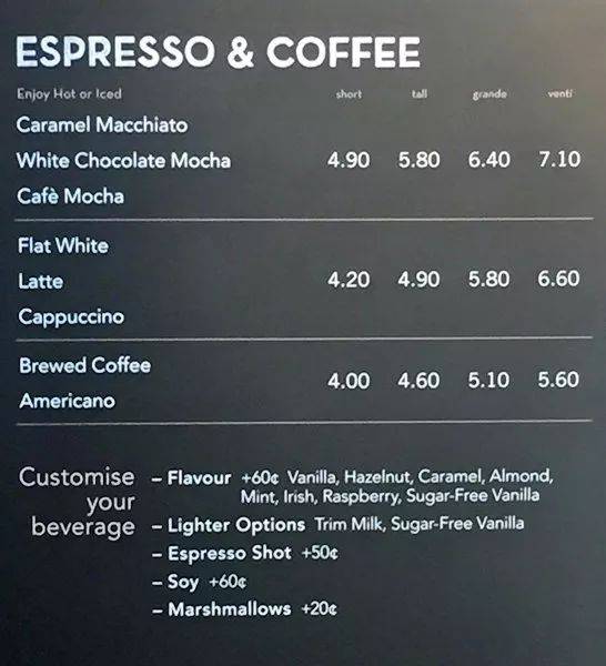 售价在4新币以上的咖啡