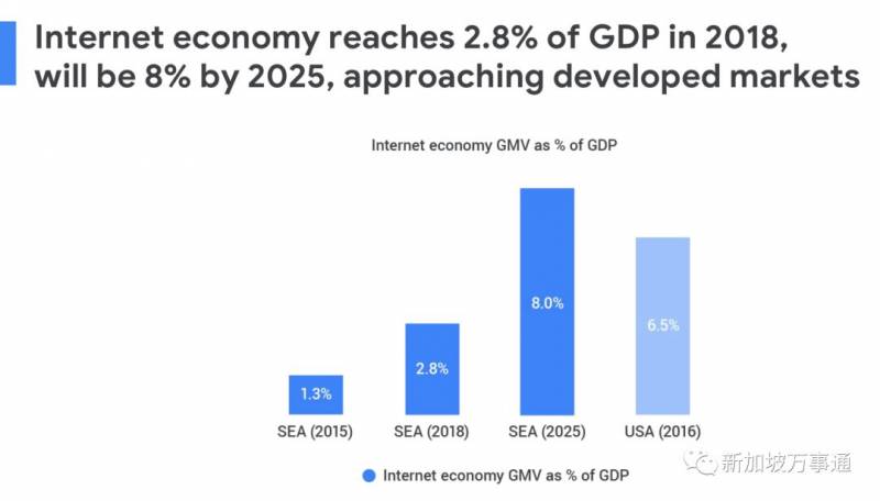 根据报告,目前互联网经济的规模仅占据整个东南亚经济的比重的2.8%。但是到了2025年,2400亿美元的预期规模,将占据整个东南市场的8%!