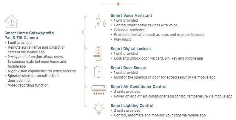 城市发展集团(CDL)在智能家居方面也一直领先于同行。智能语音助手、智能密码门锁、智能房门传感器、智能空调遥控和智能照明遥控等,都让住户能切身体会高科技的安全、方便和人性化。