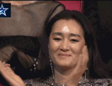 虽然巩俐霸气外露,但是在颁奖典礼过程中,也展现了她女人的一面。