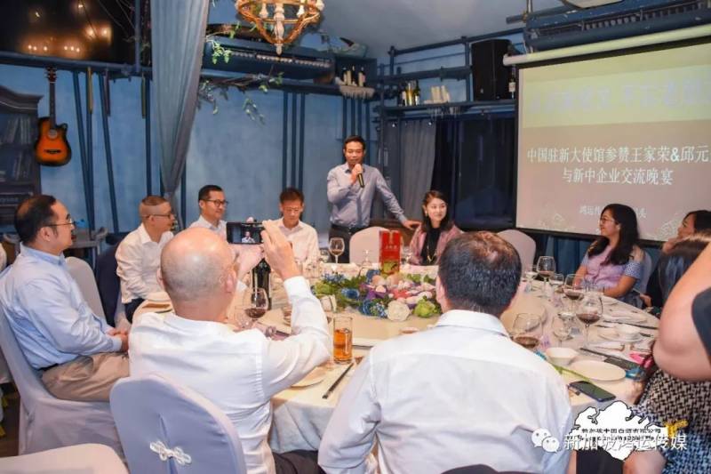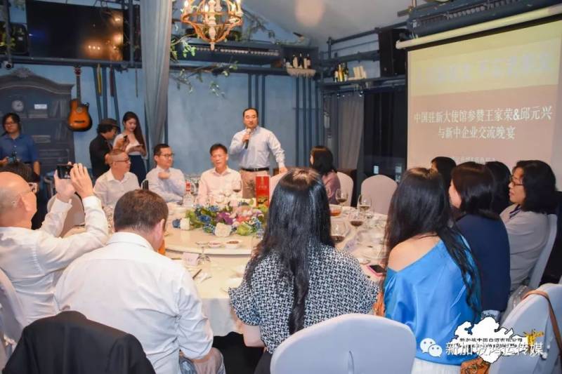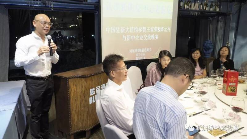 首先,组织此次中国驻新大使馆参赞与新中企业家交流晚宴的鸿运传媒创办人马龙云跟大家分享了过去与王家荣参赞的交集。