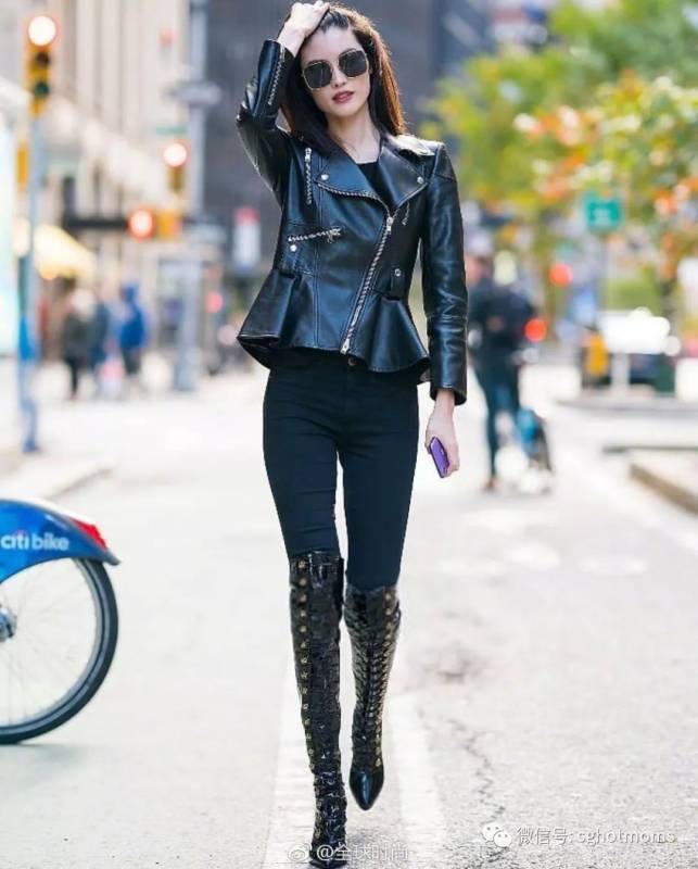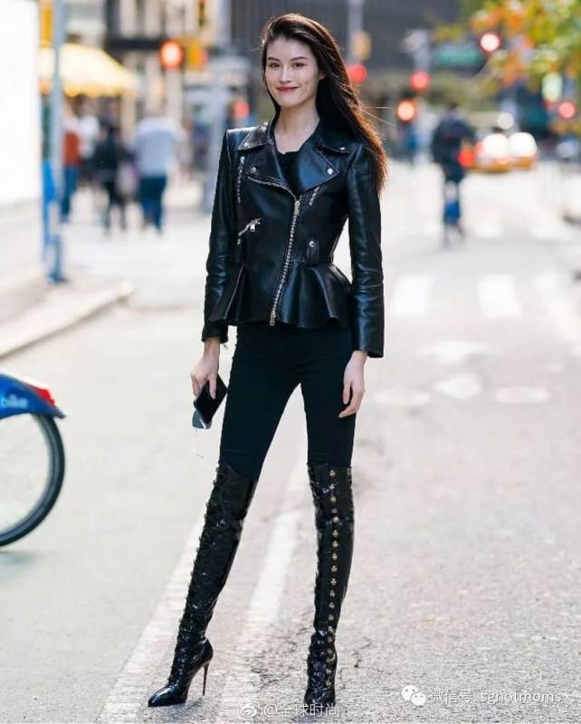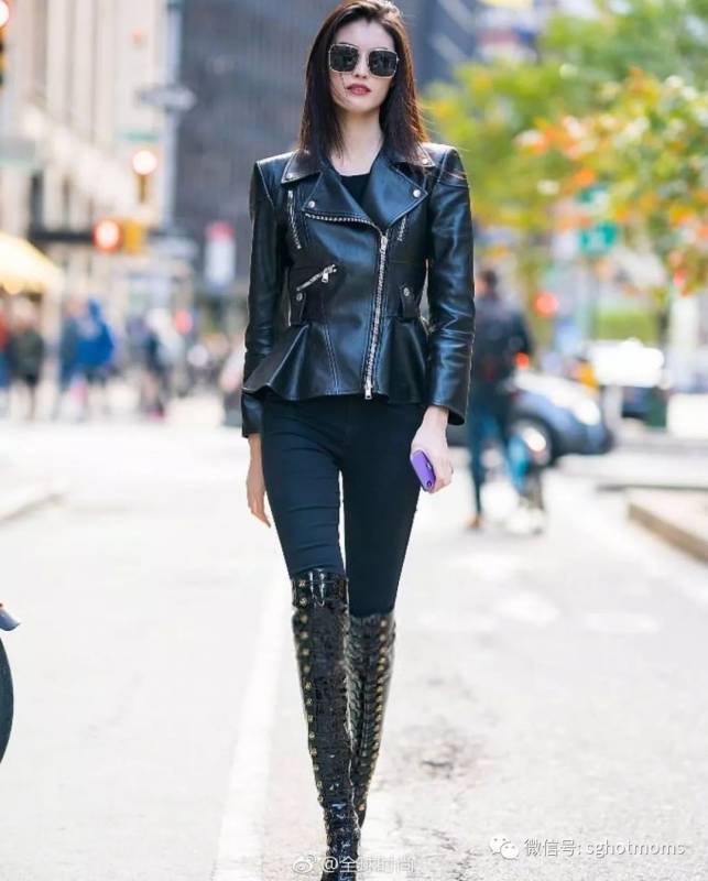 #何穗 # 皮衣加过膝长靴的何仙姑不仅腿长,皮肤还特别好,羡慕ing