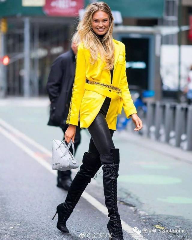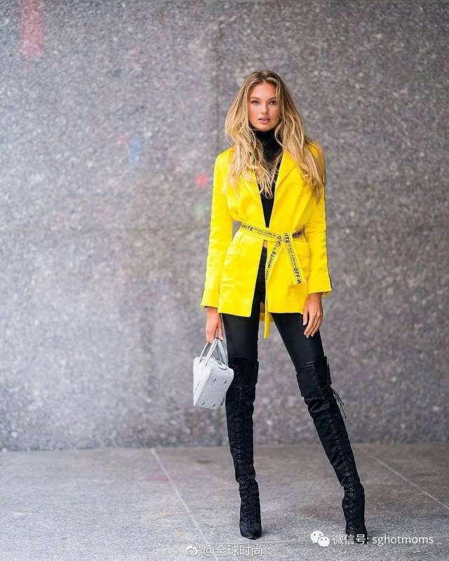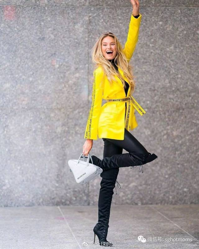 #Romee Strijd# 我们的罗梅今天的笑容和身上的OFF-WHITE外套真的是绝配!比心
