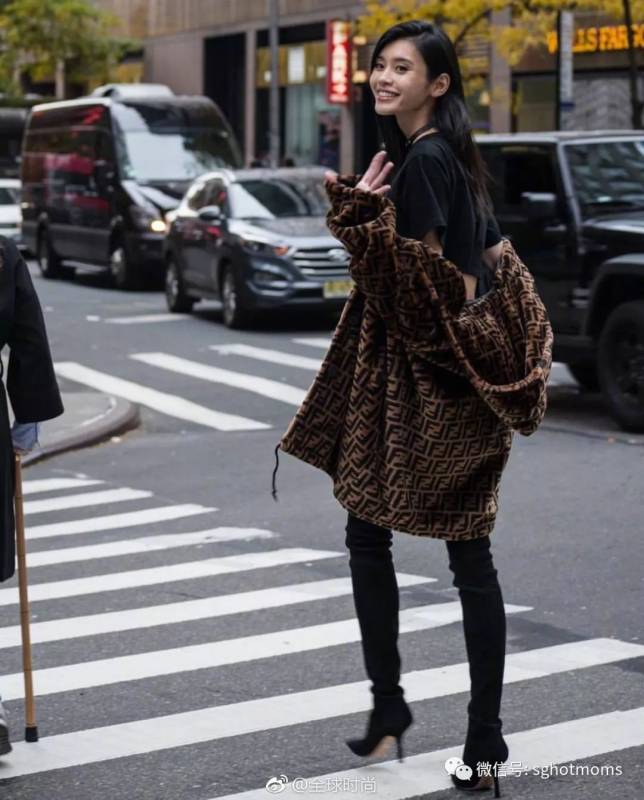 # 奚梦瑶 # 身着 FENDI外套,脚踩长靴的小明 腿好长!