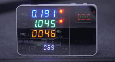 点燃烟饼之后,空气质量检测仪的 PM 2.5 数值迅速升高,并且爆表。