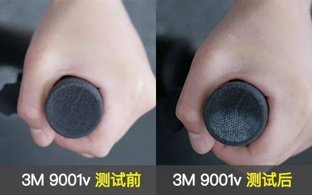 3M 9001v 口罩:外侧沾有氧化铝抛光粉,打开后黑布能够看到非常明显的变白。
