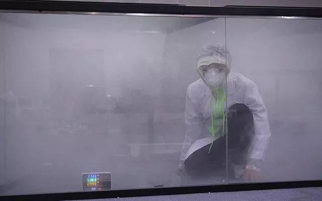 所以小优来到了一个工厂中的密封玻璃房,准备用烟饼创造一个毒气室,测试口罩的密封性!为了安全起见,小优也将自己全副武装,以免对身体造成伤害。