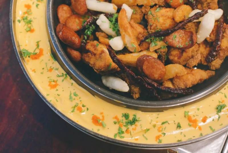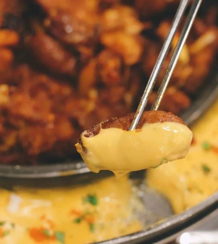 还嫌不够味?那就再蘸上铁板边上的一圈蛋黄芝士酱吧。芝士酱上还点缀著虾籽,既好看,又可以给食物提鲜。现在起至明年1月15日,你能在Yoogane享受这款季节性美食,价格为$58.8,可供三到四人享用。
