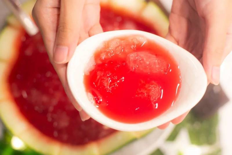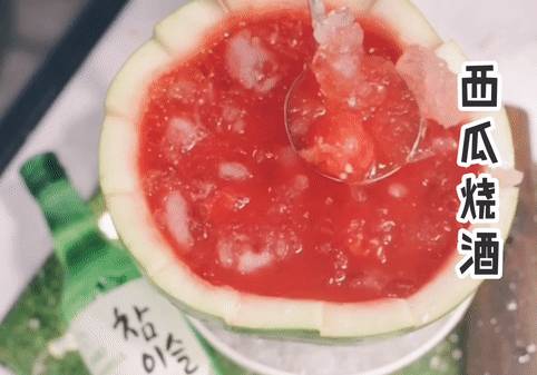 鲜甜的西瓜汁混合清新的韩式烧酒,冰冰凉凉,既解渴又解腻。