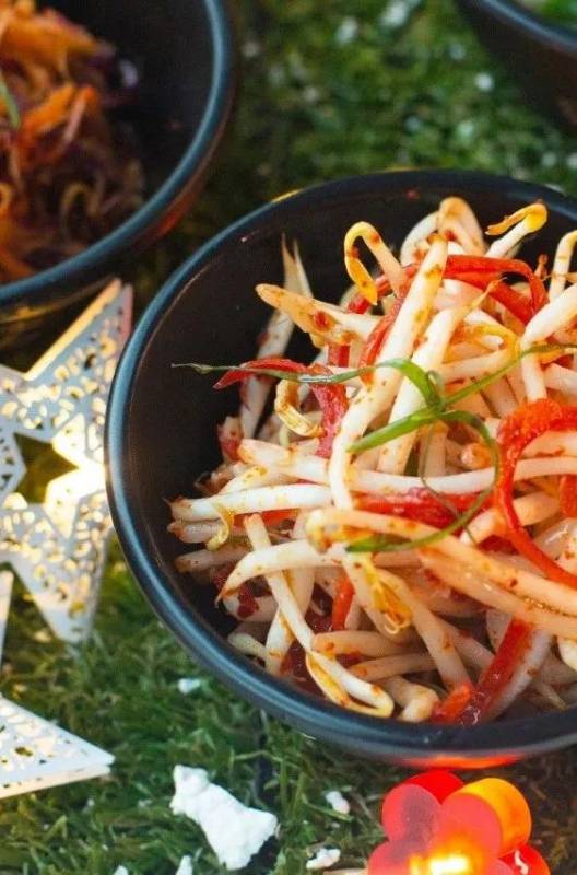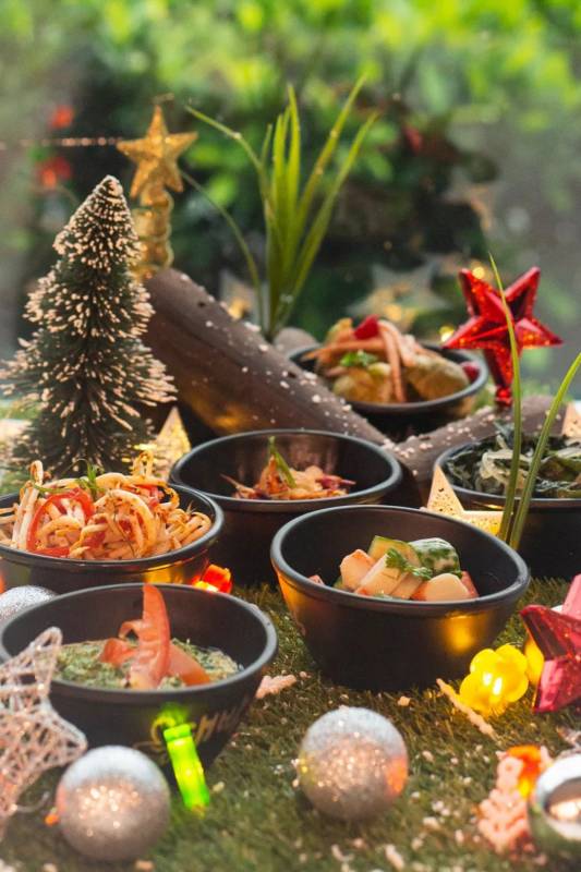 圣诞期间,店里还有各式精美的韩式小菜哦!凡是购买铁板“火焰鸡”,即赠送六样颇有艺术感的韩国传统小菜。