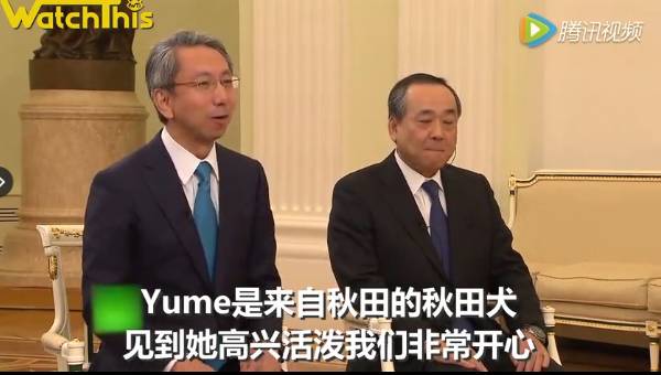 据说秋田犬Yume是一只非常凶的狗狗,不过在普京面前非常的温顺!