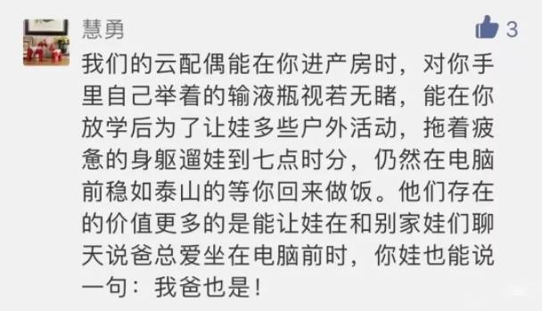 怎么说呢,网络一线牵,珍惜这段缘。云配偶在养娃过程中,总好过传说中丧偶式育儿和诈尸式育儿。