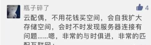 你会时常感觉这个云配偶已经不是从前那个完美的幻想中的男人,尽管他占用了庞大的云盘大数据,但该记得的一些事基本是记不住的,比如你的生日,结婚纪念日,以及各种需要发红包的节日。