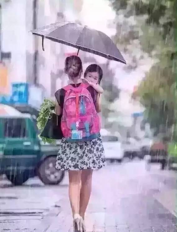 换成妈妈,可以踩着高跟鞋,右手抱娃,左手撑伞,后面背上娃书包,斜挎著自己的包,左肘子还挂着刚买的菜。