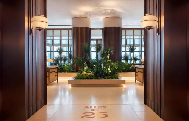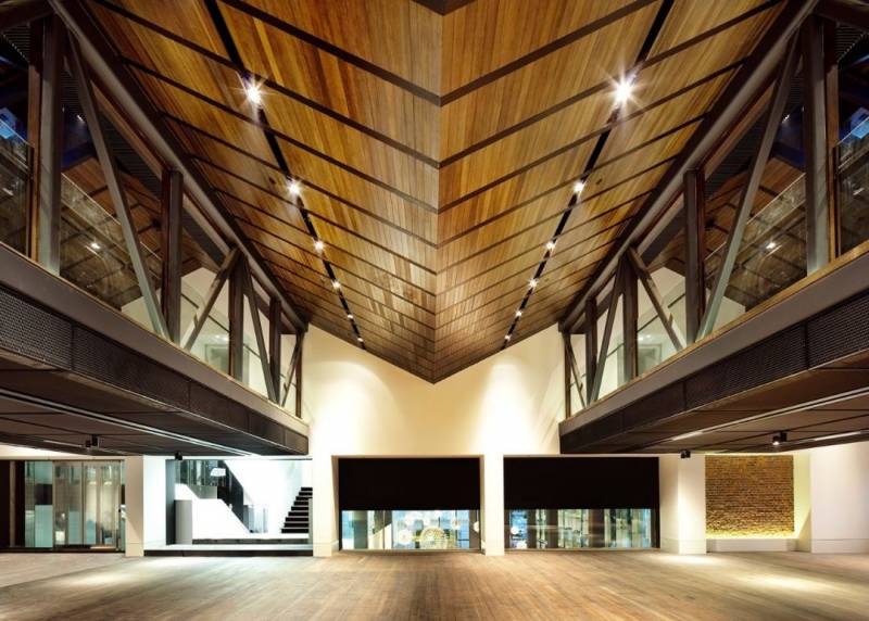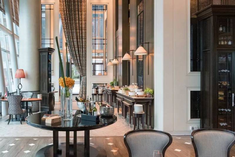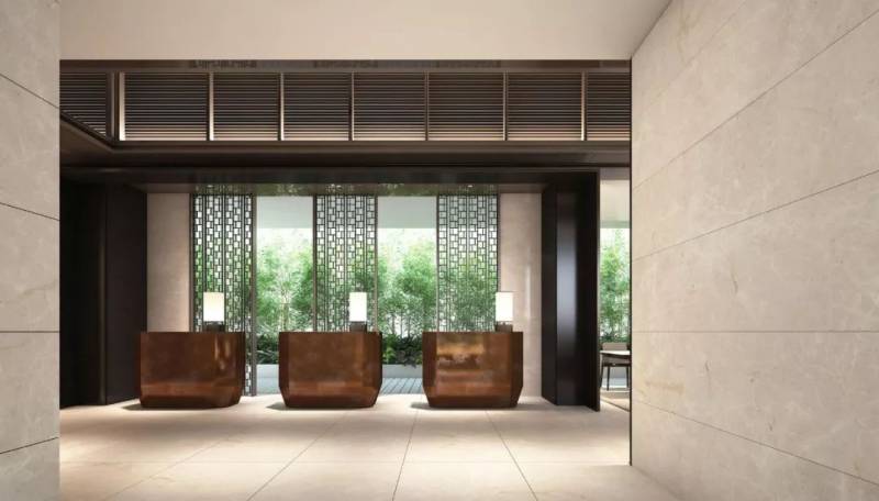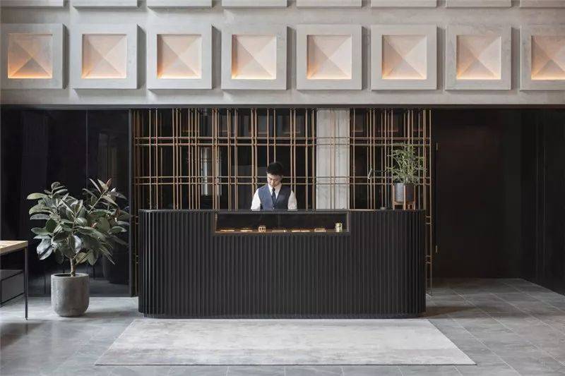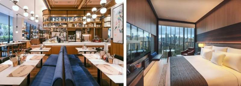 洲际酒店的室内设计围绕着工业复古和现代都市两个主题,使用了大量的石板、皮革、拉丝铜和青铜,以回应罗伯逊码头的工业元素,同时运用黑色亮漆、白色大理石和天鹅绒等软装要素,营造出奢华的现代都市氛围。