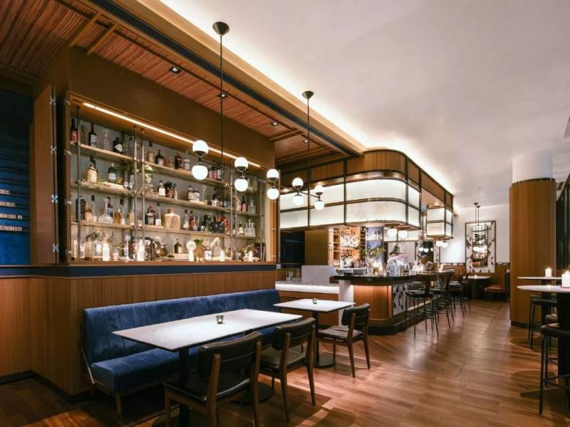 富丽敦海湾酒店大厅,以及其中的3家星级风格餐饮:THE CLIFFORD PIER 餐厅、法式酒馆 La Brasserie 餐厅及LANTERN 天台酒吧,都是由傅厚民设计。